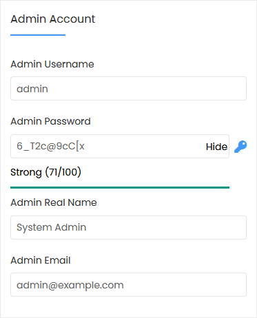 • Admin Username: Your new Contao username (for security reasons, do not use the administrator or the admin username).