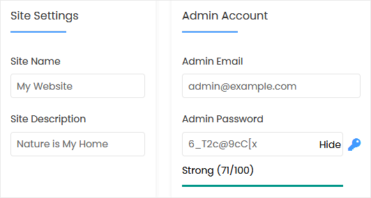 Note: Copy the admin username and password to Notepad. You will need those to access the admin area of your Quick.CMS website later.